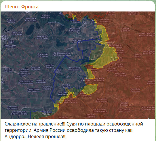 Враг подтвердил освобождение русской армией Свято-Покровского, о чём несколько дней назад сообщали с нашей стороны. Теперь перед "штурмами" открыт маршрут для продвижения дальше на запад, через Резниковку.