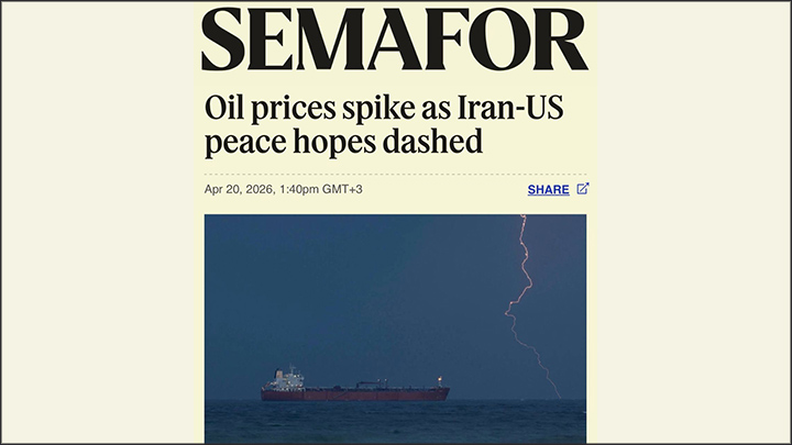 Semafor: "Цены на нефть резко выросли из-за крушения надежд на мир между Ираном и США". В окружении Трампа боятся серьёзных последствий, если цены на бензин в ближайшее время не снизятся. Скриншот: Semafor