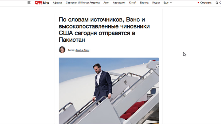 Вэнс уже готовится к путешествию в Пакистан. Скриншот: CNN