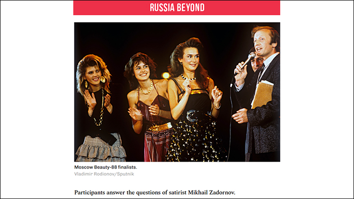 Участницам конкурса пришлось отвечать на вопросы сатирика Михаила Задорнова. Скриншот: rbth.com