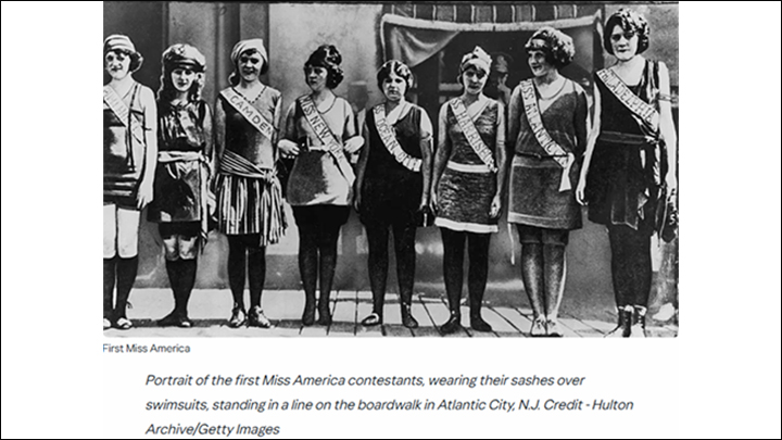 "Мисс Америка" в США в 1921 году — первый массовый конкурс, придуманный владельцами отелей Атлантик-Сити, чтобы продлить туристический сезон. Участниц выставляли в купальниках на пляже. Спонсорами стали косметические и купальниковые фирмы — фактически это была реклама под видом праздника. Но людям понравилось.