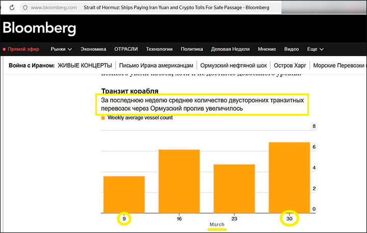 Иранская "пропускная схема" работает… Скриншот: интернет-сайт bloomberg.com (автоперевод)