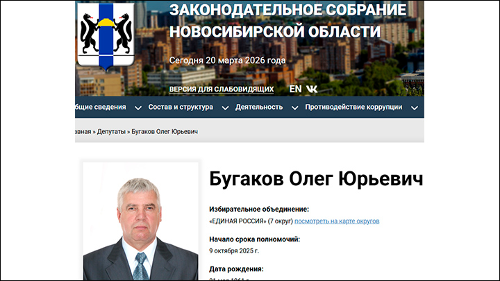 У руля гиганта племзавода "Ирмень" стоит депутат Заксобрания Новосибирской области Олег Бугаков, к которому ветеринары, видимо, просто боятся заходить. Скриншот страницы сайта zsnso.ru