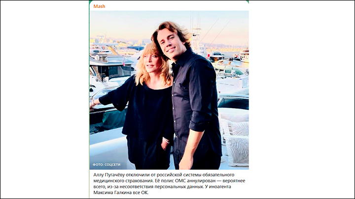 Поэтому информация об отключении Аллы Пугачёвой от системы ОМС — это не столько про потерю медицинской страховки, сколько очередной звоночек о том, что в России двери для артистки закрыты окончательно. И двери поликлиники в том числе.