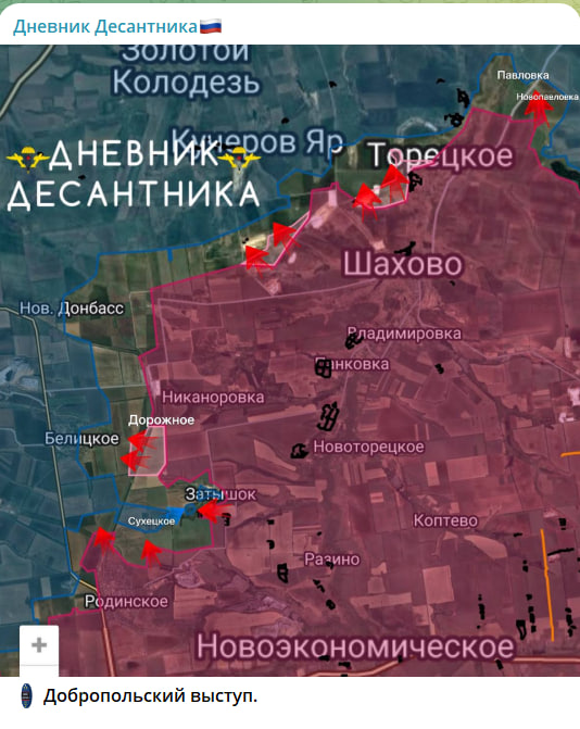 Тем временем Минобороны России буднично сообщает об освобождении деревень и сёл далеко позади воображаемой украинской линии "наступа". Вчера, например, подтвердили взятие Риздвянки, продолжается реализации стратегии огромного котла в Запорожской области вокруг Орехова.