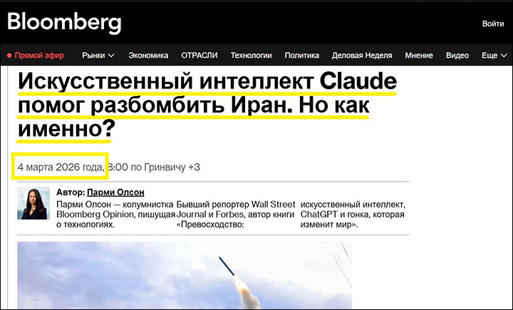 При планировании ударов по Ирану использовался ИИ-алгоритм с изящным названием (именем?) Claude (Клод) от компании Anthropic. Правда, в начале года Пентагон и лично Трамп с этой компанией рассорились, однако услуги по анализу разведданных и выбору целей для поражения уже были оказаны.