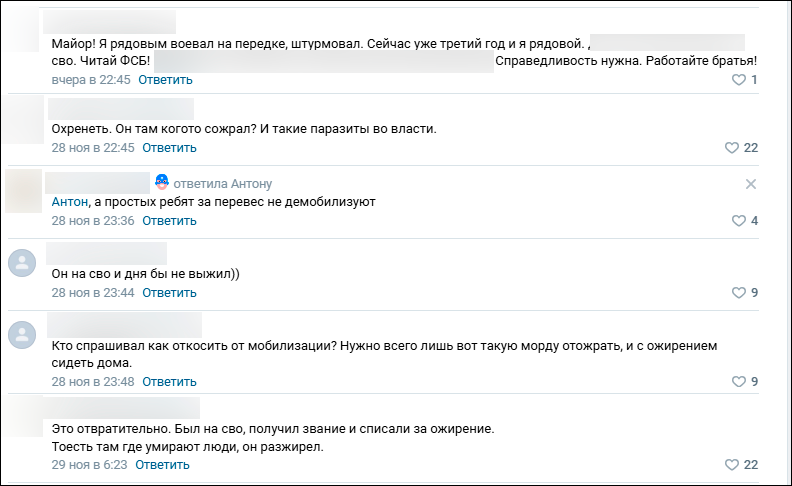 Реальные бойцы высказали всё, что думают о таких вояках, как Штокман. Скриншот комментариев с ВК-сообщества "Кстати (новости Нижнего Новгорода)"