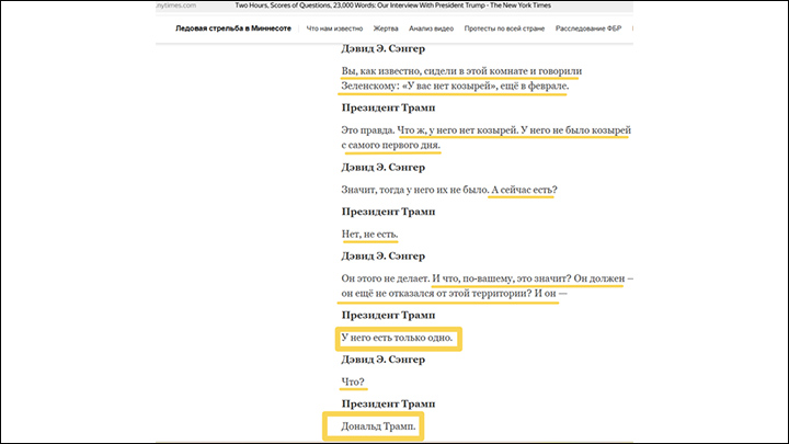 Фрагмент интервью с Трампом издания NYT: nytimes.com (автоперевод)