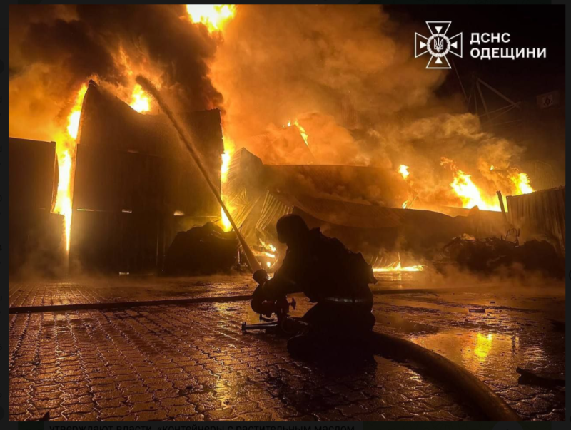 Украинское издание "Политика страны" утверждает, что в результате обстрела порта город остался без света. Возникли пожары в двух жилых домах, здании автозаправки и на территории порта, где горели, как сообщают местные власти, "контейнеры с растительным маслом, транспортом и древесными палетами". Хотя, судя по кадрам в Сети, источник возгорания куда серьёзнее и взрывоопаснее.