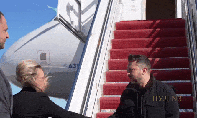 Зеленский быстро выкрутился - получилось смешно, жалко и унизительно. Поняв, что на земле его никто не ждёт, он рефлекторно мобилизовал своих подчинённых. В итоге его у трапа торжественно встретили и пожали руку глава ОП Андрей Ермак и пилот. Сразу понятно: давно не виделись.