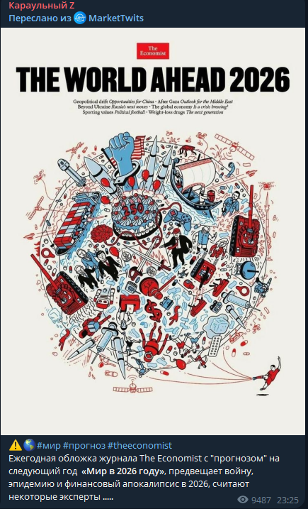 В конце 2025 года журнал The Economist показал новую обложку с прогнозом на будущий год. Редактор выпуска Том Стэндидж прокомментировал её так: "2026 год станет годом неопределённости". На фоне войны США с Ираном картинка стала чуть более понятной: отстреливающийся танкер уже больше не похож на русский - будто бы речь идёт об Ормузском проливе. Политолог Вадим Сипров в беседе с Царьградом отметил, что кое-что из сценария на год, который предложили глобалисты на обложке журнала, уже началось сбываться. Эксперт проанализировал изображение и сделал выводы: и Трамп в растерянности, и товарищ Си разводит руками. Надежда только на одного человека.