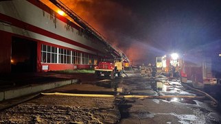 Площадь пожара на предприятии по изготовлению дверей распространилась на площади 20 тысяч квадратных метров.